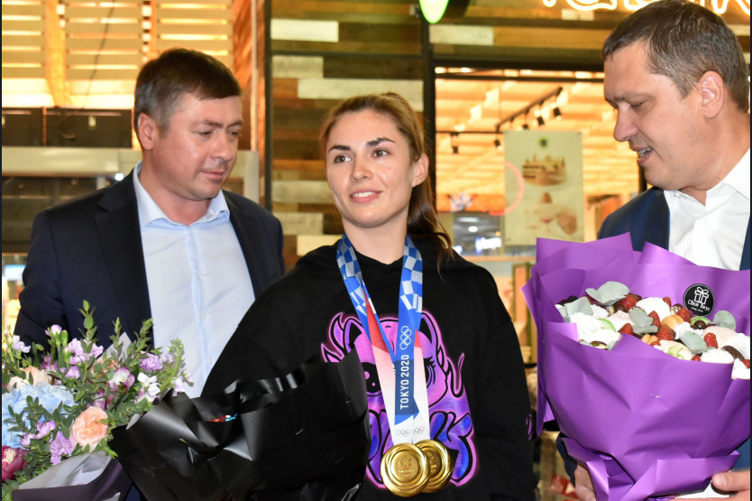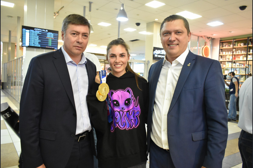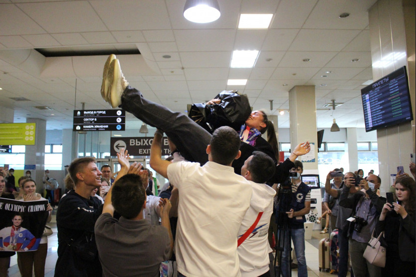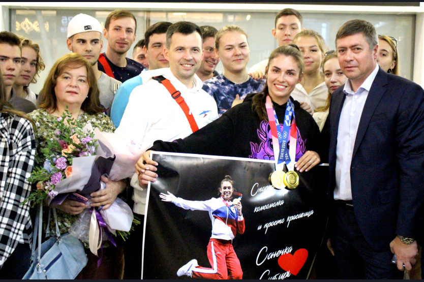 Министр физической культуры и спорта Новосибирской области Сергей Ахапов, президент Олимпийского совета в НСО Игорь Коротнев, первый тренер нашей героини Сергей Степанкин, молодые фехтовальщики-новосибирцы, представители спортивной общественности, журналисты – все торжественно и дружно встретили чемпионку. А прилетела она из Москвы, поскольку там проживает в последнее время. Но продолжает на всех соревнованиях по-прежнему выступать за Новосибирскую область, где родилась и выросла, впервые взяла в руки саблю и сделала свои первые шаги на пути к Олимпу.